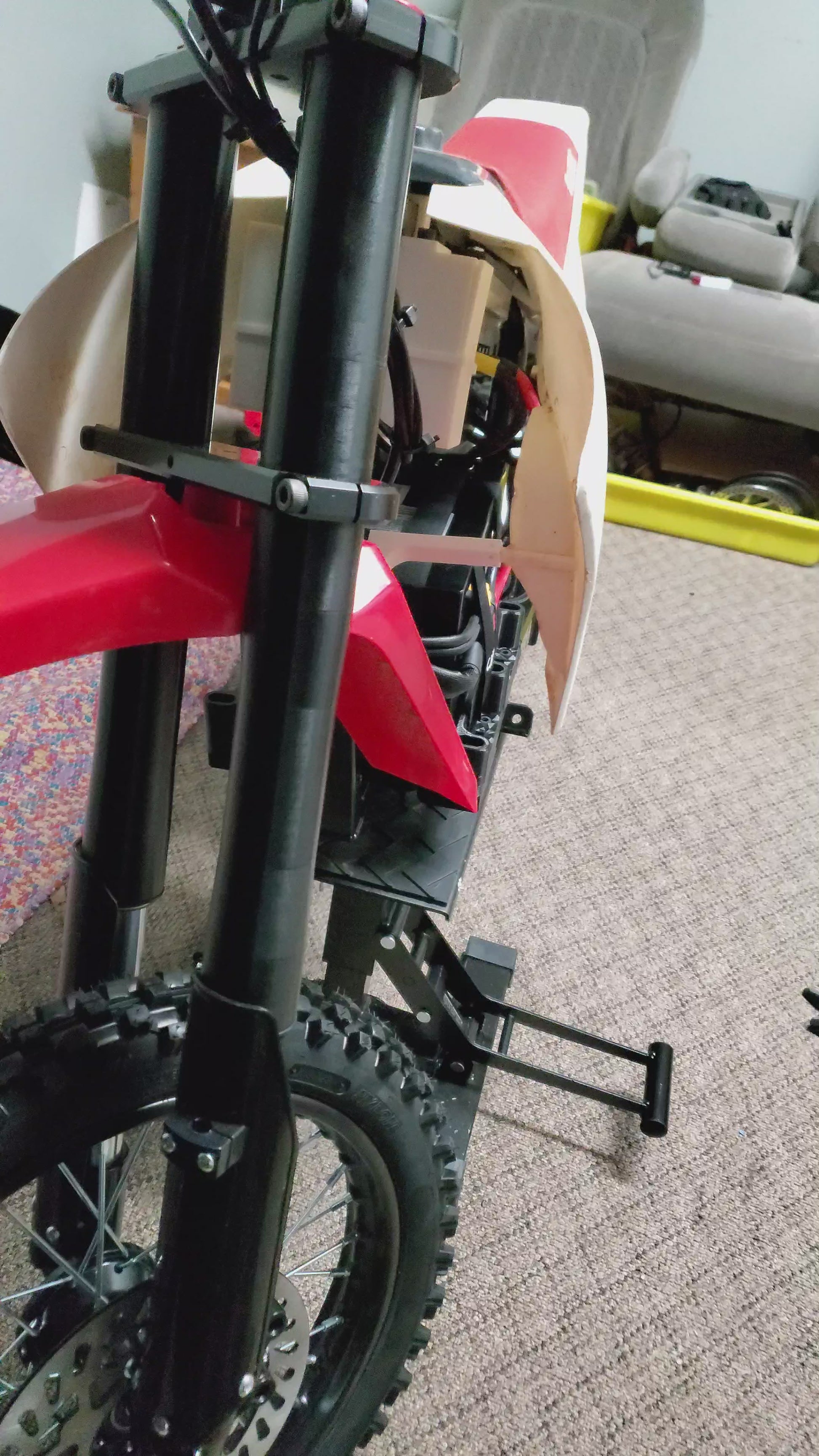 These 3d printed TPU fairing mounts are the perfect solution for riders who want to delete their stock battery covers, but also keep their fairings firmly connected to the frame. At high speeds, the sx500 body fairings will catch wind and flip back without these connectors.